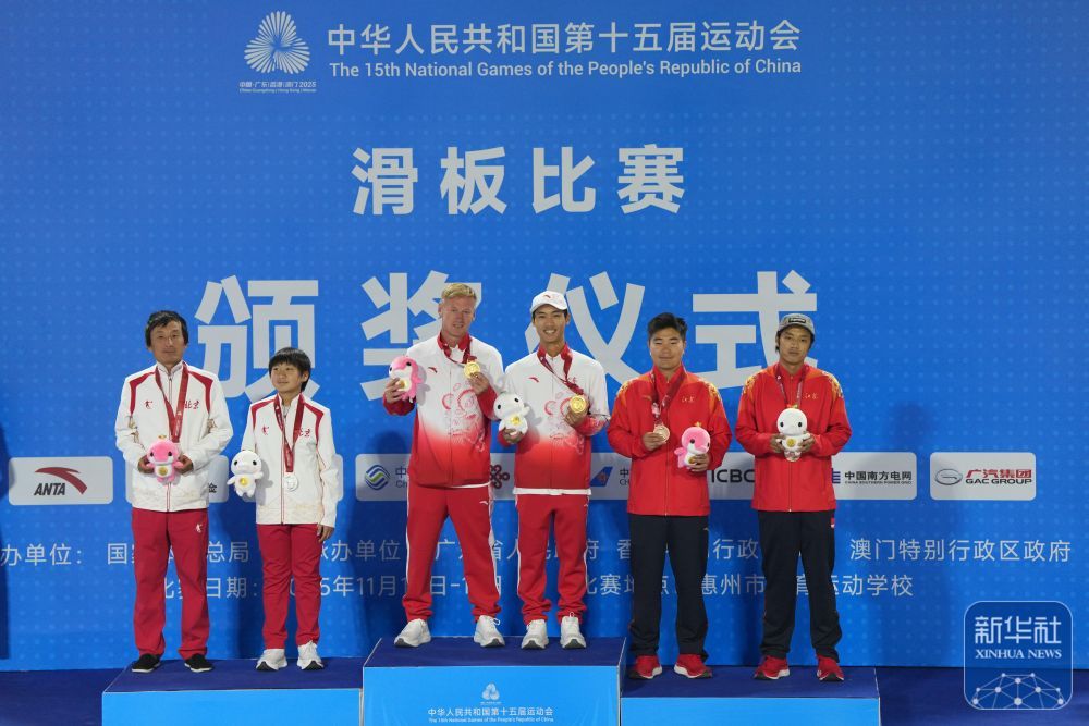 11月11日,第十五届全国男子街头滑板比赛总决赛在广东省惠州市举行。冠军是广东队的潘家杰,亚军是北京队的王腾和,亚军是江苏队的高群翔。 ^ 冠军广东队潘家杰(右三)、亚军北京队王登河(左二)、季军江苏队高坤翔(右一)在颁奖典礼上与教练合影。 ^ 广东队潘家杰在比赛中。 ^ 湖北队球员臧赫在比赛中庆祝。 ^ 江苏队高坤翔在比赛中。 ^ 湖北省队球员陈子峰在比赛。 ^ 广东队潘家杰在比赛中。 ^ 北京队的王腾赫在比赛中离场。 ^ 江苏队高成宇在比赛中。 ^ 广东队林洪浩在比赛中。照片提供:新华社记者刘坤